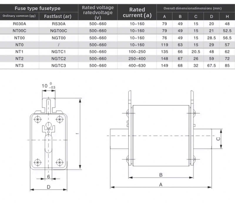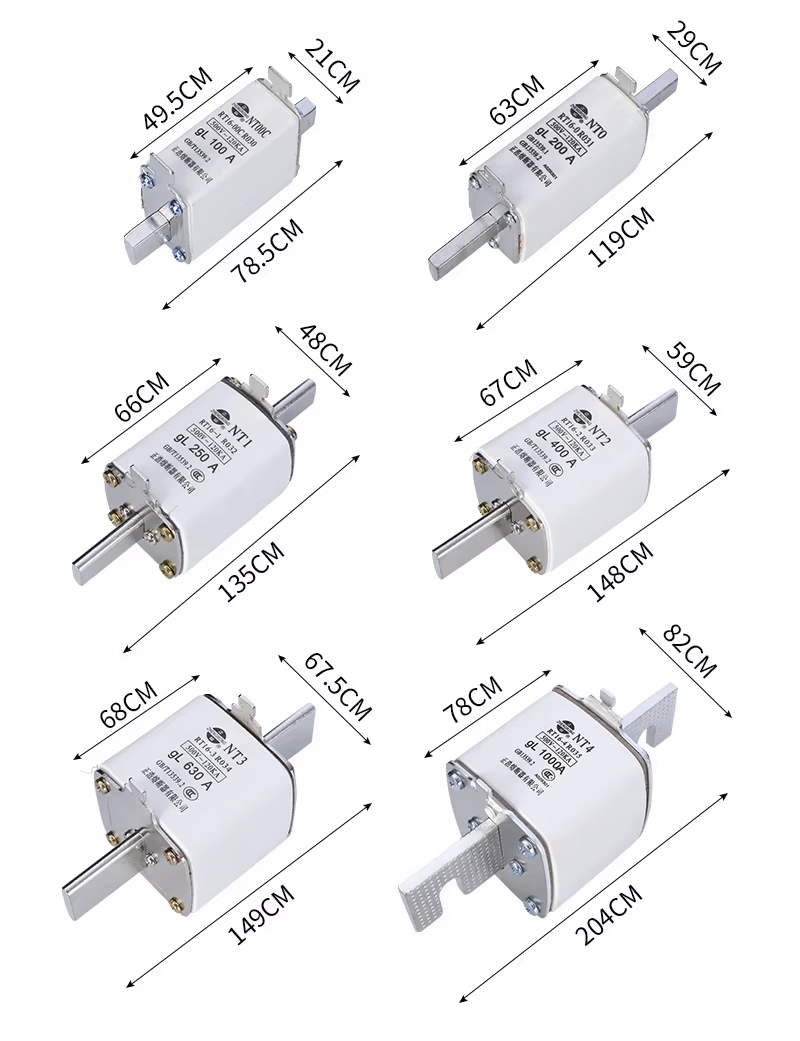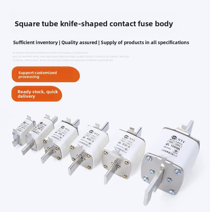 Квадратные керамические предохранители серии NT/NH обычно используются в промышленном электрооборудовании, энергосистемах и электронном оборудовании для защиты цепей от перегрузок и коротких замыканий.