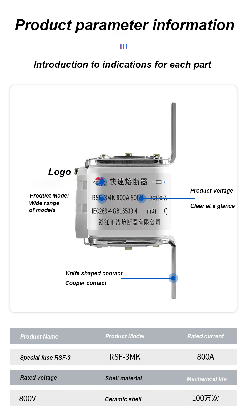 Предохранители RSF-3MK 800V-800A BC100KA — это высокопроизводительный промышленный автоматический выключатель, подходящий для сценариев электрической защиты высокой мощности. Предохранители RSF-3MK 800V-800A BC100KA