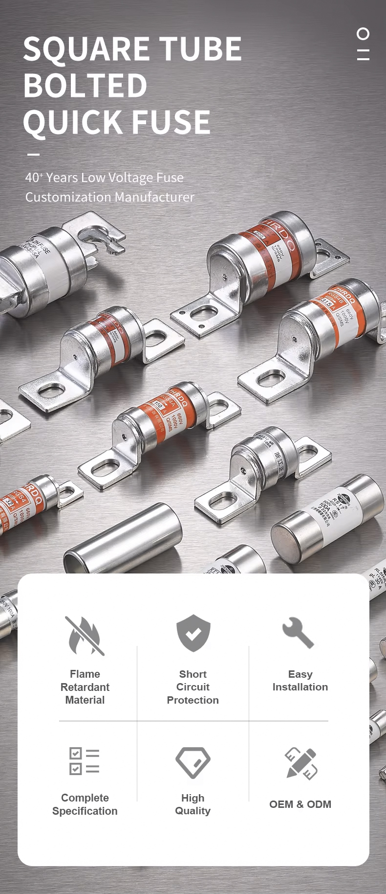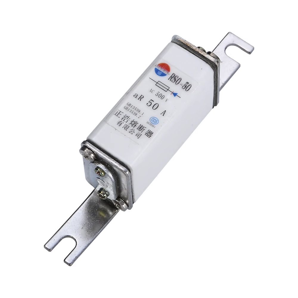Предохранитель RS0/RS3-50 500 В представляет собой быстродействующий предохранитель с квадратной трубкой, закрепленный болтами, с номинальным напряжением 500 В и отключающей способностью 50 кА, который имеет хорошую гарантию безопасности.