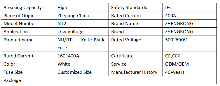 ZHENGRONG NT2 315A 500V Fuse Квадратные керамические предохранители обычно используются в промышленном электрооборудовании, силовых системах и электронном оборудовании для защиты цепей от перегрузок и коротких замыканий.